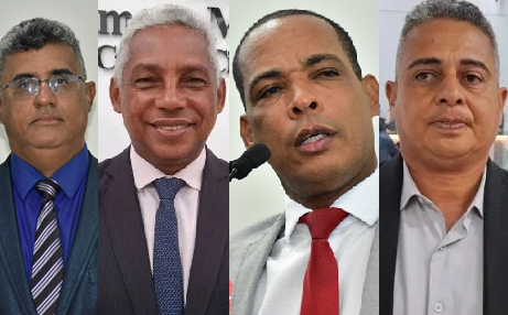 Nas eleições de 2026, quando teremos disputa para deputado estadual, quatro nomes da Câmara Municipal estão dispostos a assumir uma vaga na Assembleia Legislativa da Bahia (ALBA). São eles: Lulinha da Conceição (União Brasil), Jurandy Carvalho (PSDB), Luiz da Feira (PP) e Silvio Dias (PT). Dos quatro nomes postos, Lulinha da Conceição e Luiz da Feira já foram testados para o cargo, porém, sem sucesso. (Foto ilustração: Lulinha da Conceição, Silvio Dias, Luiz da Feira e Jurandy Carvalho)