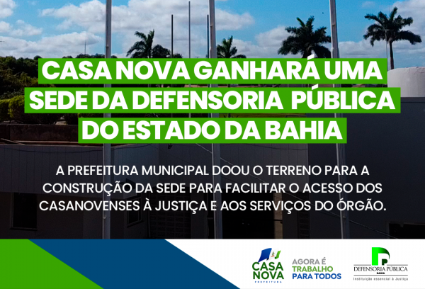 A Prefeitura de Casa Nova realizou a doação, autorizada pela Lei nº 503/2025, de 27 de junho, do terreno, localizado na rua da Agrotécnica, Centro, onde será construída a nova unidade da Defensoria.