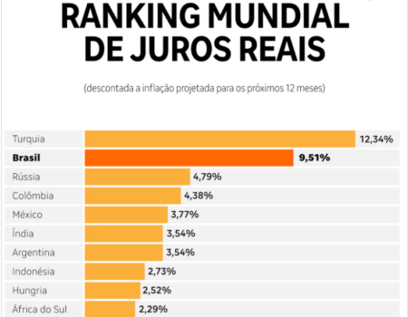 O Brasil voltou à segunda colocação no ranking global de juros reais, atrás da Turquia e...