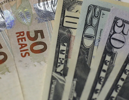 O dólar fechou a segunda-feira em queda ante o real, pouco abaixo dos 5,75 reais, acompanhando o...
