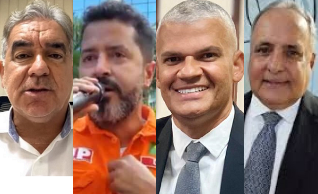 Já é visível a circulação dos pré-candidatos a deputado federal por Feira de Santana: Zé Neto e Deivid Bacelar pelo PT, Pablo Roberto (PSDB) e Zé Chico (PDT), na sede e nos distritos. Todos garimpando votos para as eleições de 2026. O desafio é grande, mas Feira já elegeu quatro deputados federais em várias oportunidades. (Foto ilustração: Zé Neto, Deyvid Bacelar, Pablo Roberto e Zé Chico)
