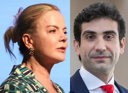 A ministra Gleisi Hoffmann, das Relações Institucionais, disse nesta quinta-feira (19) que a alta de 0,25 ponto percentual na Selic, taxa básica de juros, é “incompreensível”. Em mensagem publicada na rede social X, a ministra afirmou que o país “espera que este seja de fato o fim do ciclo dos juros estratosféricos”. (Foto ilustração: Gleisi Hoffmann e o presidente do BC, Gabriel Galípolo)