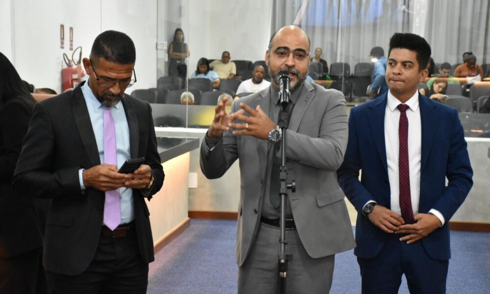 O pré-candidato a deputado estadual Thiago Gilleno (Republicanos) foi motivo de críticas na Câmara Municipal de Feira de Santana, na manhã desta quarta-feira (22). Coube aos vereadores Pedro Américo (Cidadania) e Jurandy Carvalho (PSDB) criticarem a posição do mesmo. Os dois informaram na tribuna que Thiago Gilleno declarou que vai votar em Lula para presidente e Jerônimo Rodrigues para governador, ambos do PT. Os dois cobraram uma posição do partido Republicanos, representando na Casa Legislativa pelo vereador Eli Ribeiro, que preferiu o silêncio. É que o Republicanos apoia a pré-candidatura de ACM Neto (União Brasil) para governador. Já para presidente o partido ainda não definiu quem vai apoiar. (Foto: Pedro Américo entre os colegas Pastor Valdemir e Ismael Bastos)