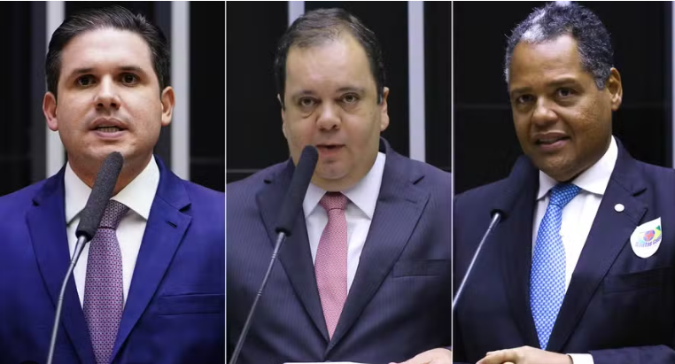 A pouco mais de três meses da eleição para a nova Mesa Diretora da Câmara dos Deputados, que irá comandar a Casa no biênio 2025/2026, três nomes já surgiram na disputa à Presidência da Câmara. (Foto ilustração: deputados Hugo Motta, Antonio Brito e Elmar Nascimento)